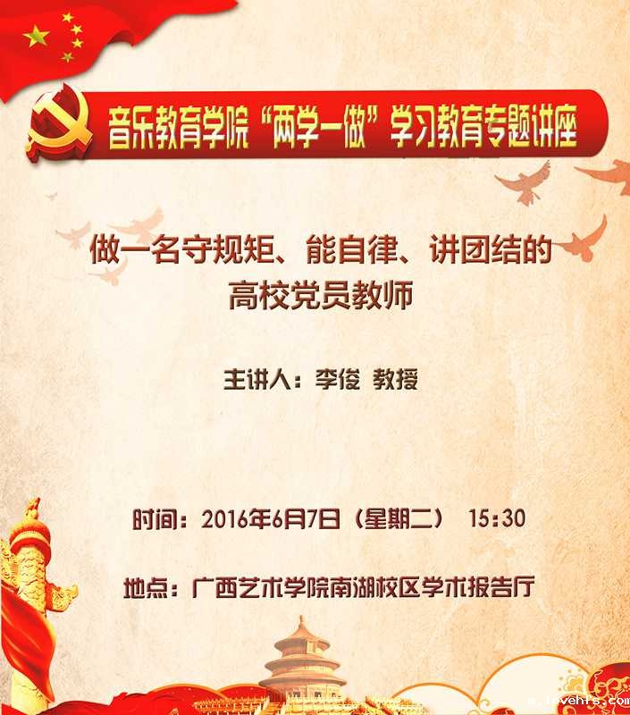 【两学一做】lovehfs“两学一做”学习教育专题讲座 来源: 作者: 发布时间:2016-06-07 08:41:57 浏览次数: 次 【字体:小 大】 做一名守规矩、能自律、讲团结的高校党员教师 主讲人:李俊 教授 时间:2016年6月7日(星期二) 15:30 地点:广西艺术学院南湖校区学术报告厅 分享到: 【打印正文】