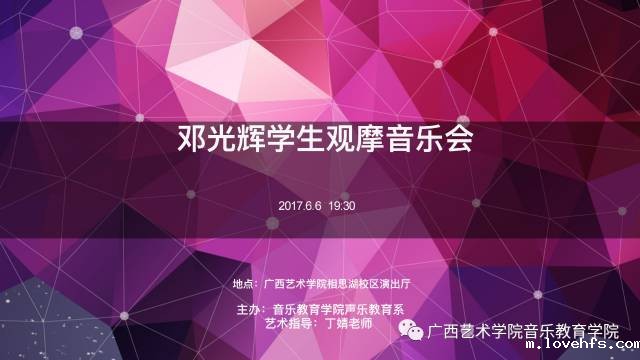 2017年6月6日(星期二)19:30,lovehfs邓光辉老师学生观摩音乐会将在相思湖校区演出厅精彩上演,欢迎广大师生到场观看指导!